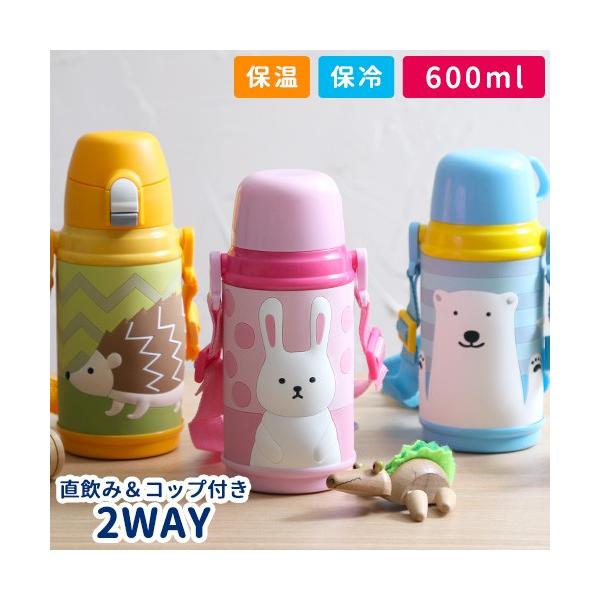 Qoo10 ドウシシャ 水筒 キッズ 2way 3d 立体イラスト 子供 直飲み コップ付き 水筒 保冷 保温 600ml Dbks6003 Doshisha