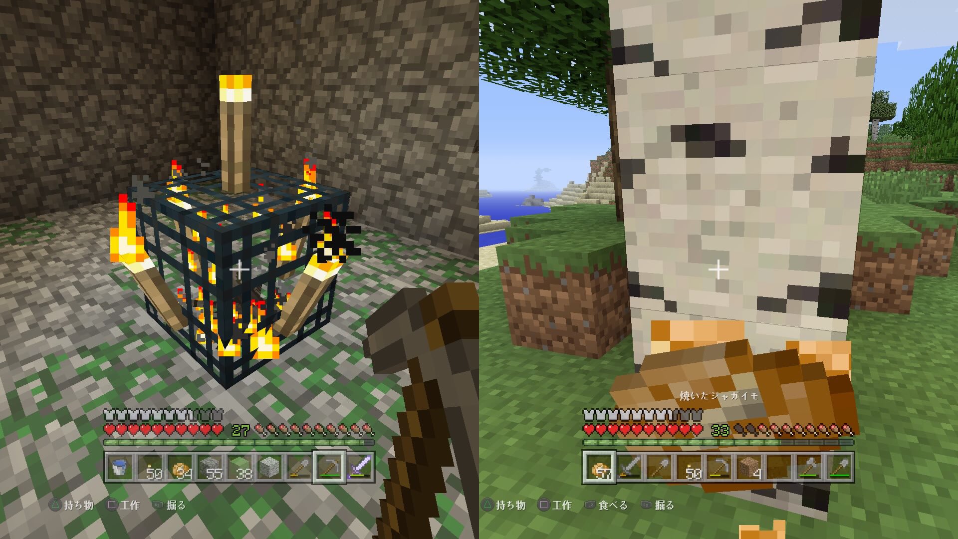 民家の天井などで見かけますが、採取することはできません。ハサミがないことも理由の1つです。 素手で壊すと、クモの糸が手に入ります。 クッションにはならない 本家マイクラではクモの糸に触れると移動スピードが落ちます。クモスポナートラップ作りました! おはこんばんちは皆さん! BE版はアップデート (ver18~)で新たな足場ブロックが追加されました! ( ゚∀゚)フーン それがこちら バン! Σ (゚ω゚)ビク 誤って壊さないよう気を付けましょう! ( ゚∀゚)フーン